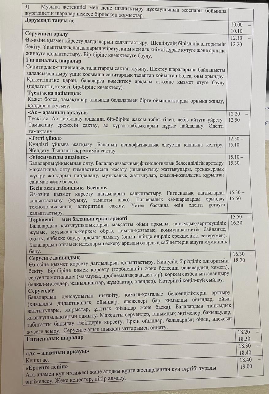Мектепалды "Жұлдызша" тобының жаз мезгіліне арналған күн тәртібі