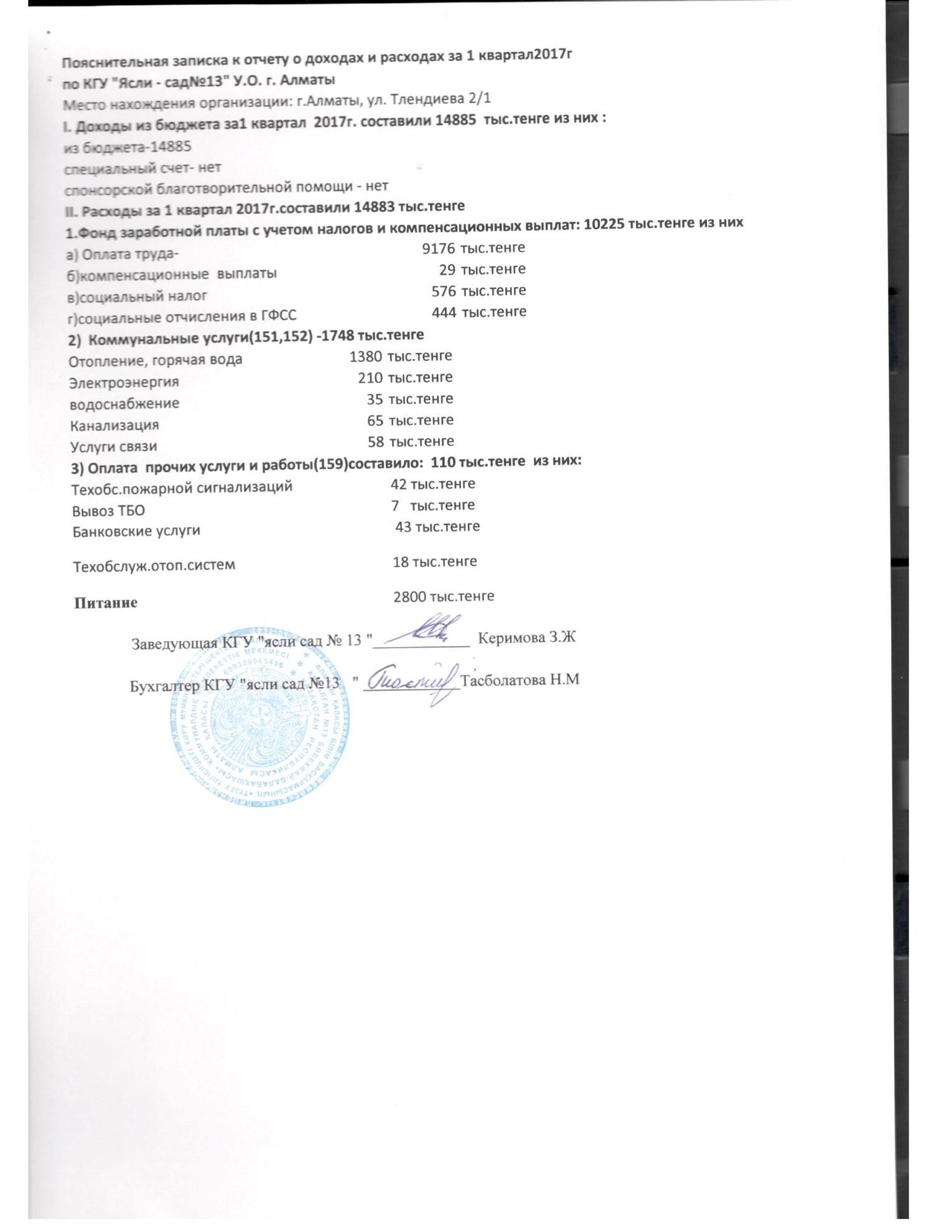 » Отчет о доходах и расходах за 1 квартал 2017г