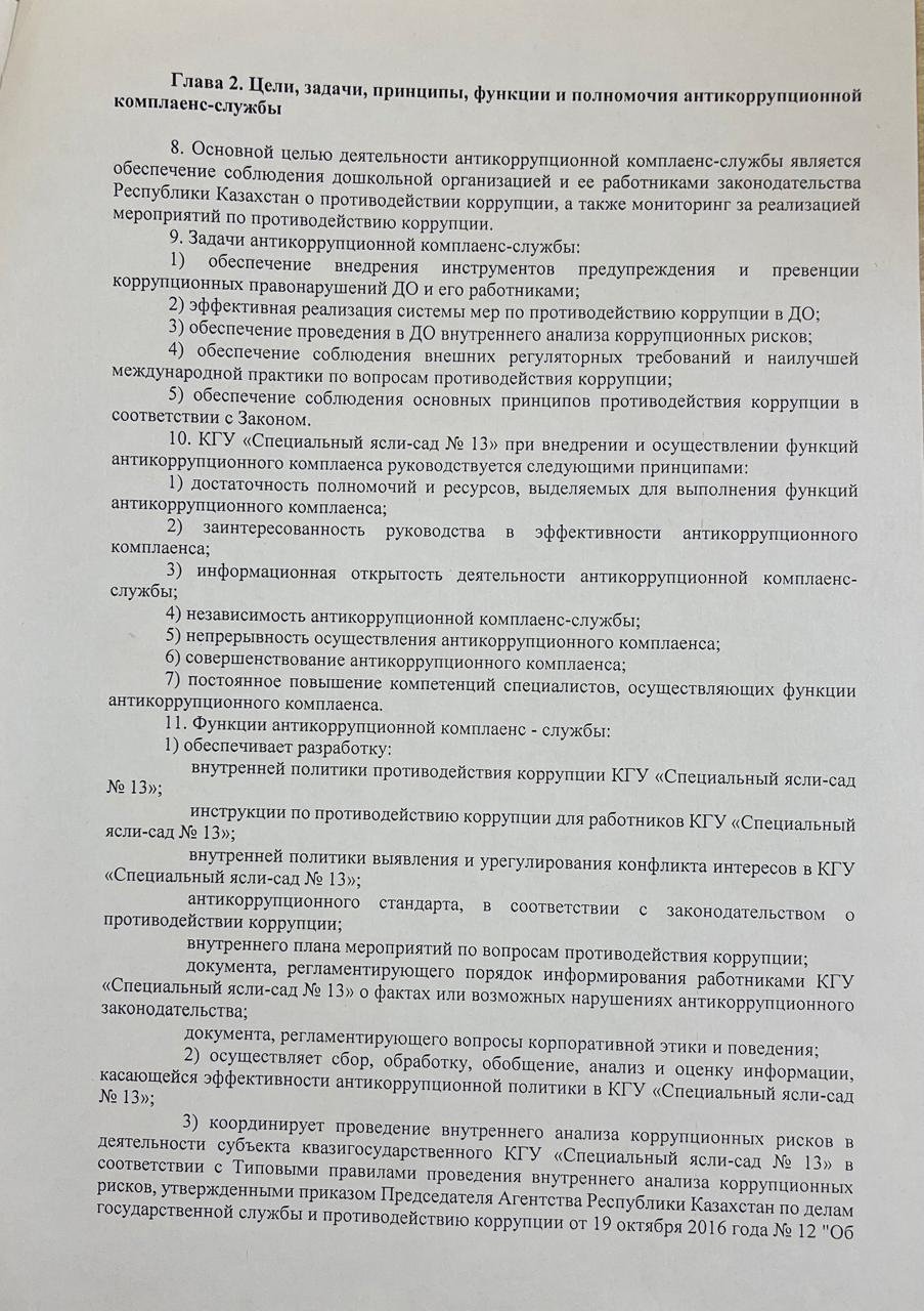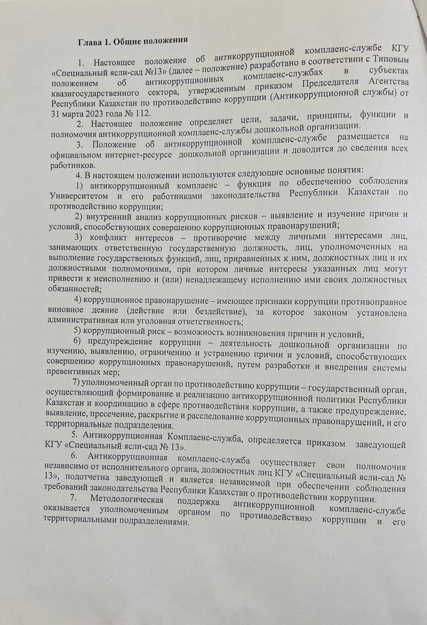 » Положение об антикоррупционной комплаенс-службе КГУ "Специальный ясли-сад №13"