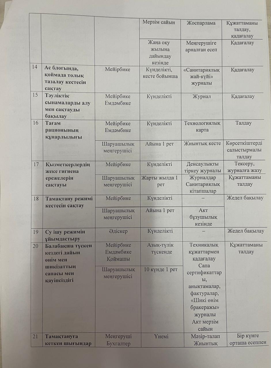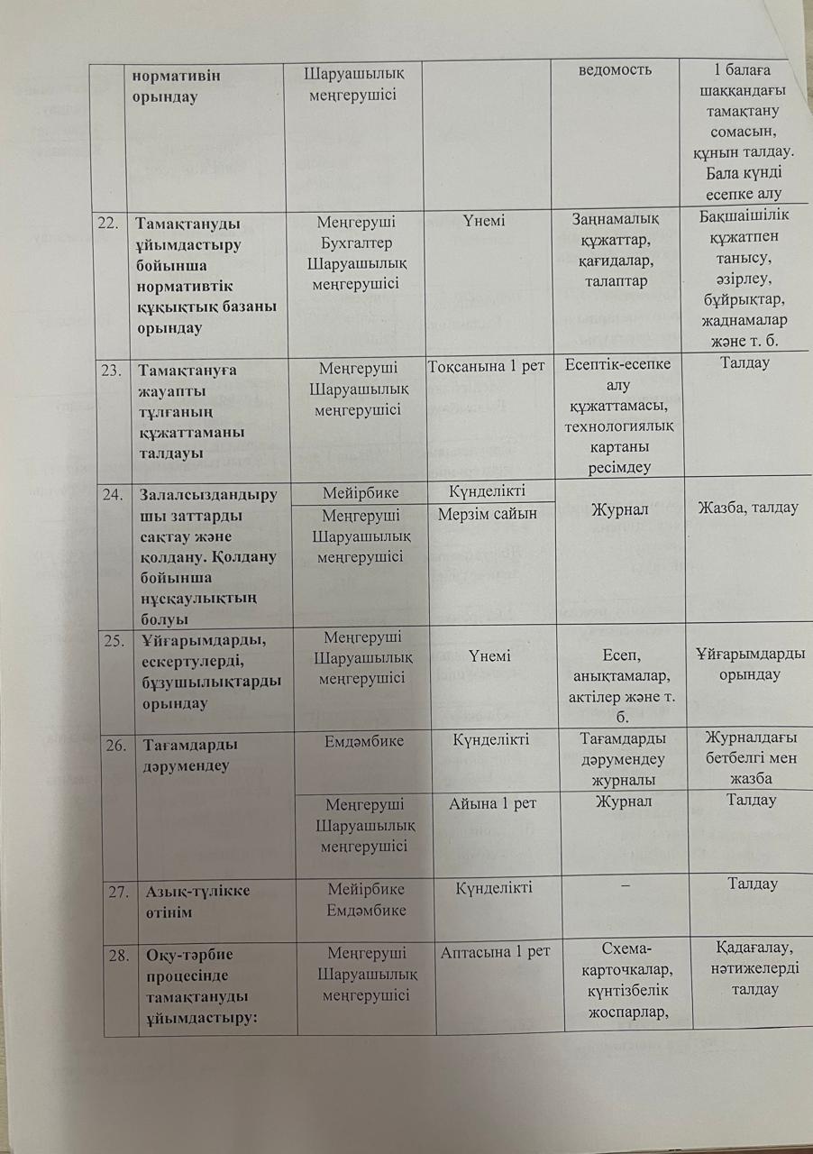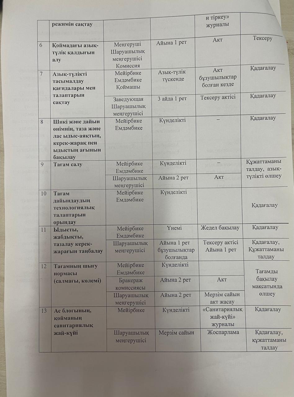 27 август 2025 0 1 2 3 4 5 2025-2026 оқу жылына арналған балалардың тамақтануын ұйымдастыруды бақылау жоспар -кестесі
